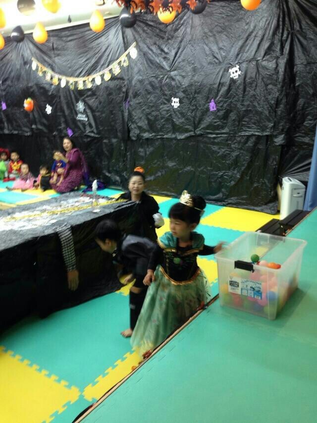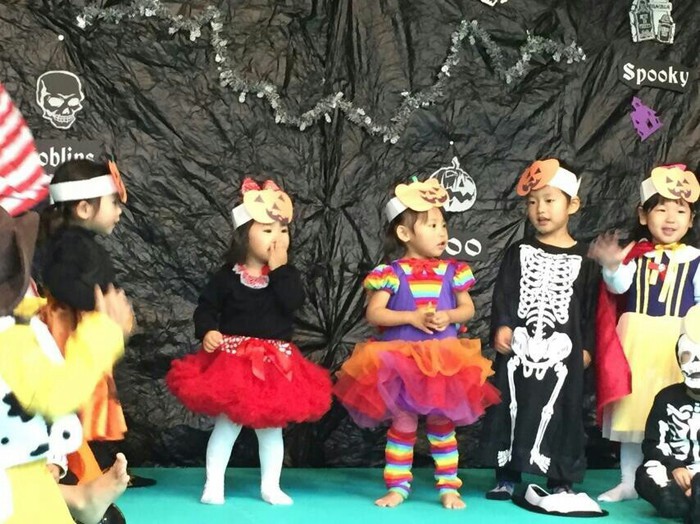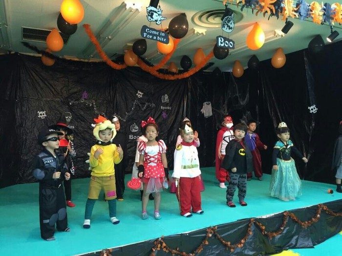 子ども達とパレードしながらお店をまわらせていただき「trick or treat!」をしました。