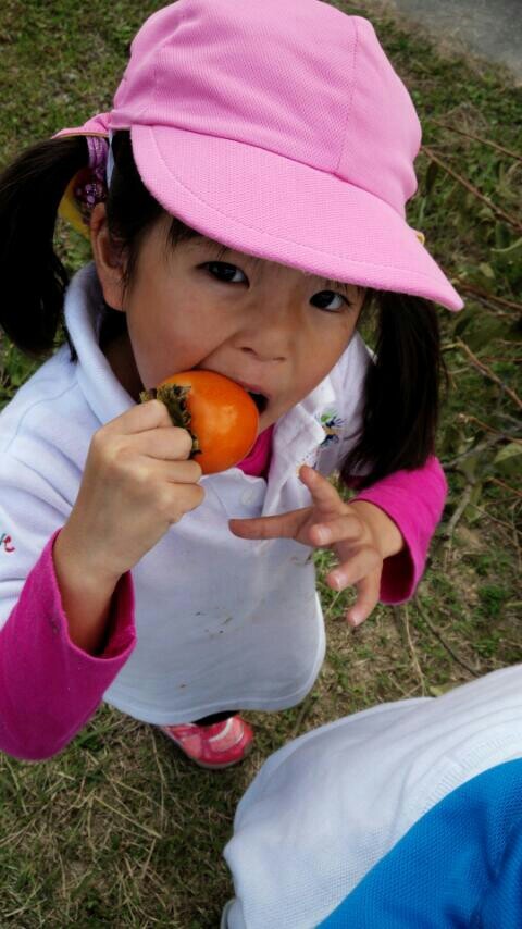 お昼ご飯を頂き、おやつはなんと とれたて新鮮の柿!!